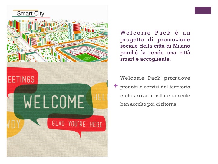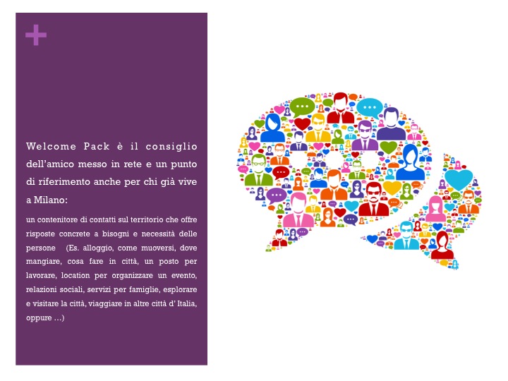 Welcome Pack è il consiglio dell’amico messo in rete ma anche un punto di riferimento per chi già vive a Milano, un contenitore di contatti sul territorio che offre risposte concrete a bisogni e necessità delle persone (una casa, una stanza, un posto dove mangiare, dove fare shopping, cosa fare e come muoverti in città, oppure …)